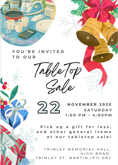 Tabletop Sale - 22nd November 2025, 1pm - 4pm